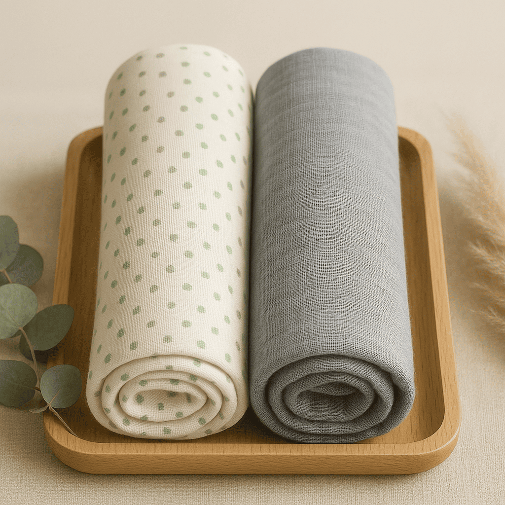 Muslin Cotton Swaddle – 2pc (Grey+Polka dots)