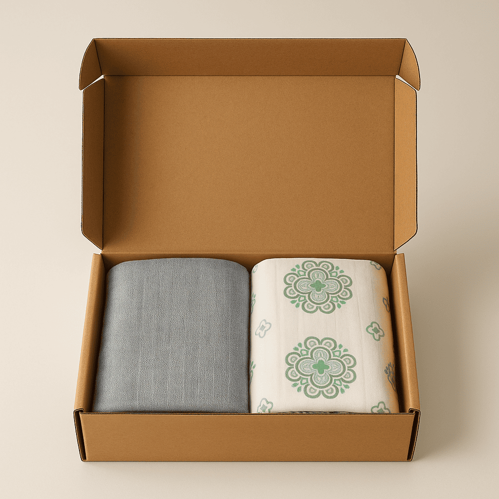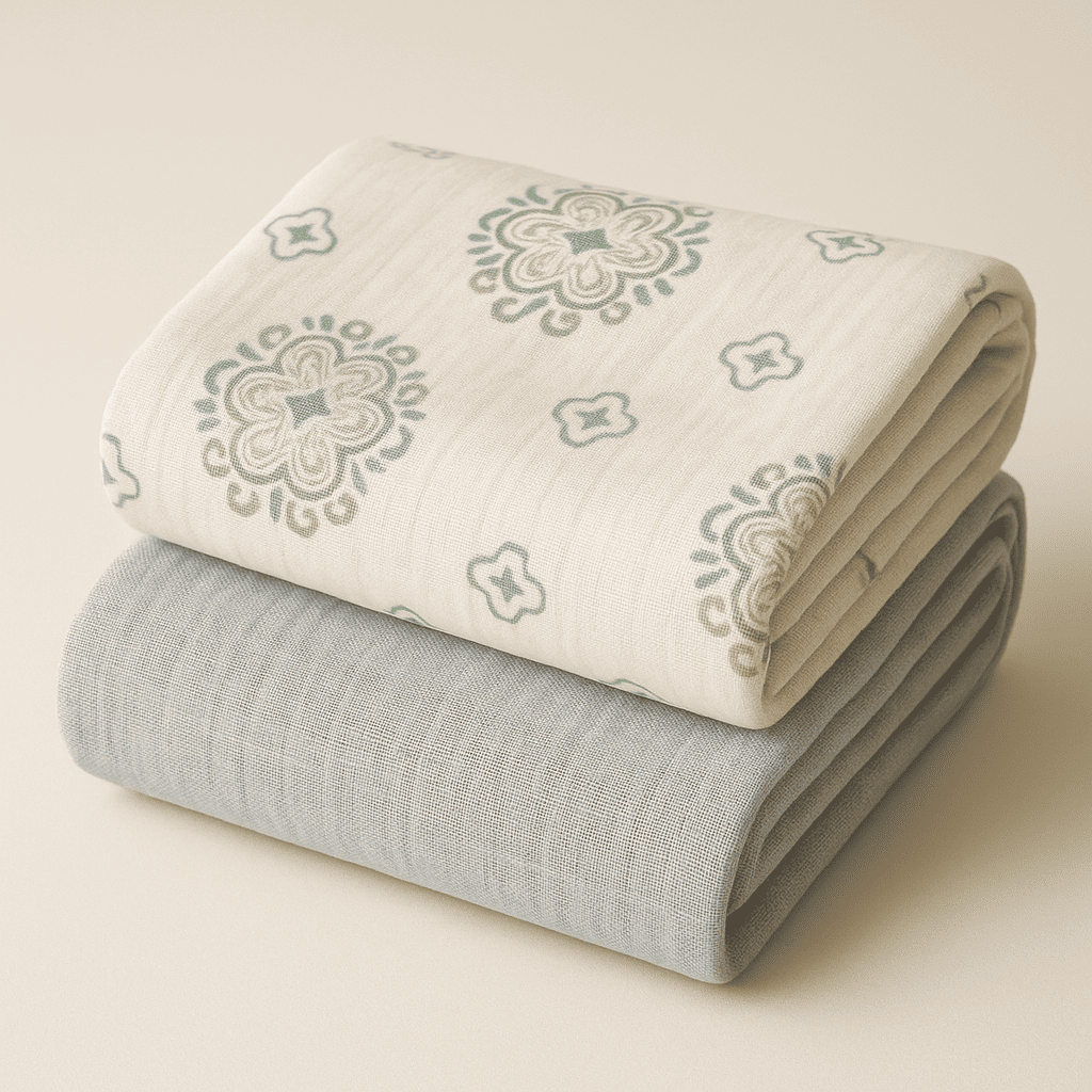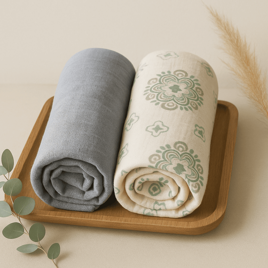 Muslin Cotton Swaddle – 2pc (Grey+sq. pattern)
