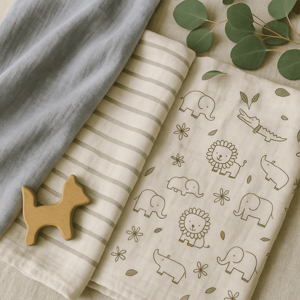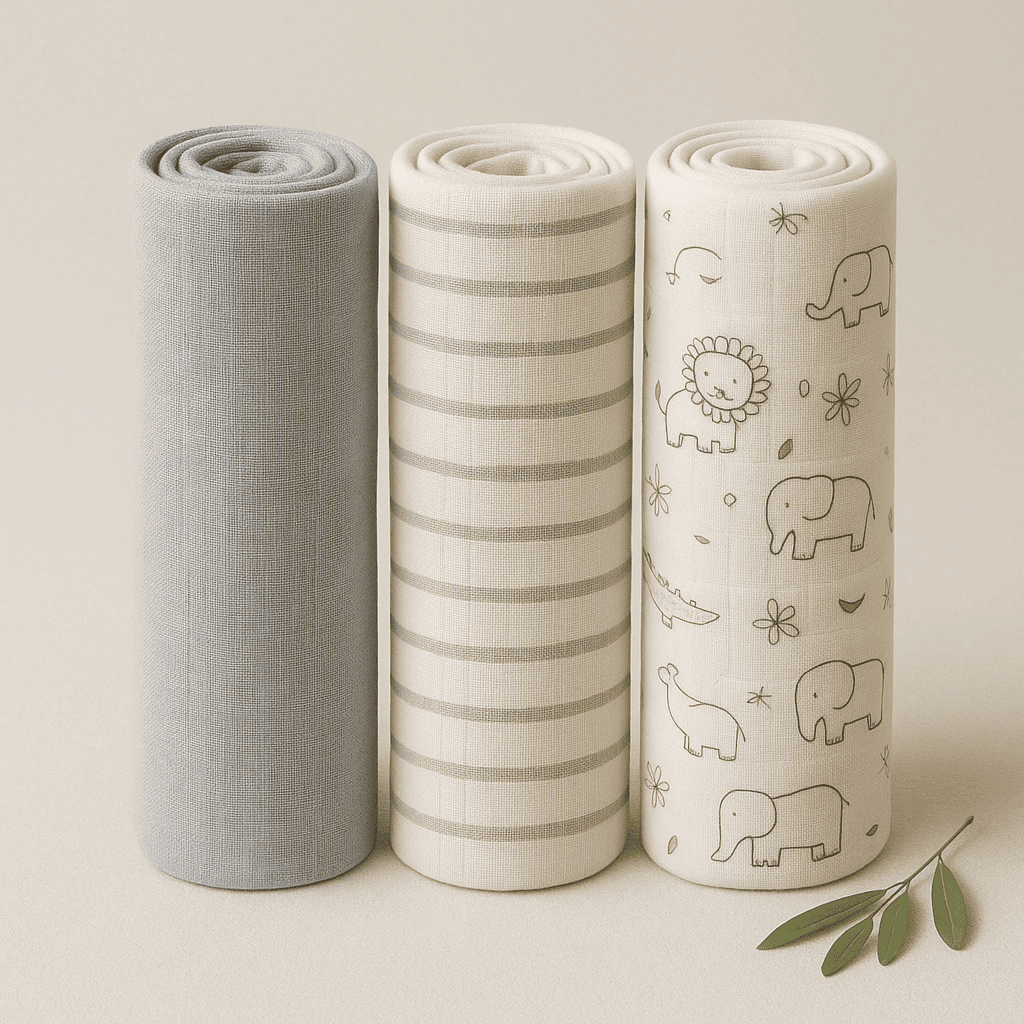 Muslin Cotton Swaddle – 3pc (Grey+stripes+animals)